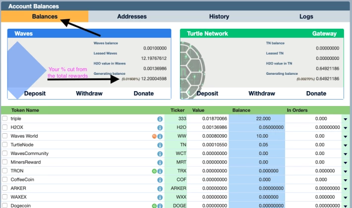 All tokens are hosted on the WAVES blockchain and there are two gateway tokens: TRX & DOGE.